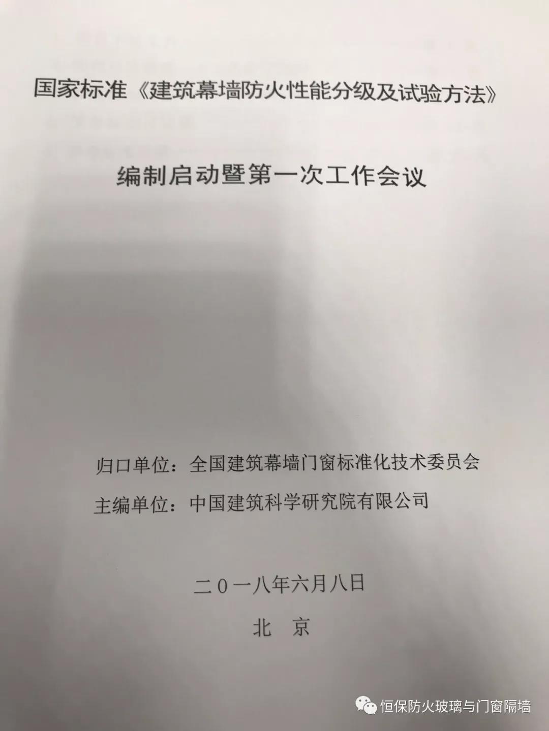 全國建筑幕墻門窗標準化技術(shù)委員會秘書處劉會濤高級工程師代表標委員會宣讀編制組名單,標準編制啟動會圓滿結(jié)束。鶴山恒保陳沃林總經(jīng)理也應(yīng)邀參加了這次的國家標準編制。